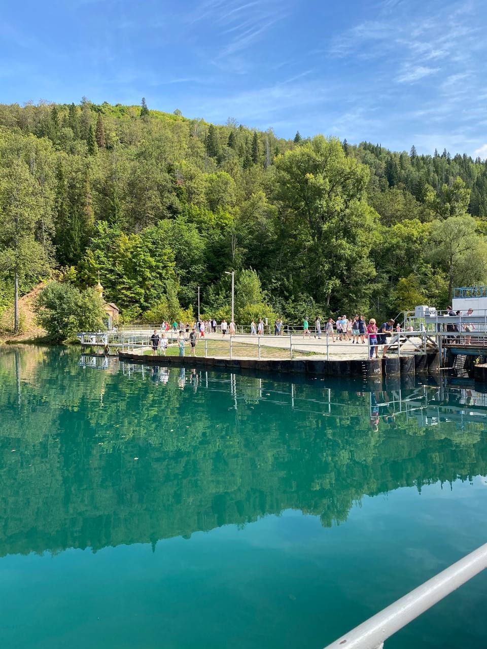 Отдохнув душой на территории монастыря и набрав святой воды отправимся по гидроэлектростанции Павловского водохранилище к роднику Красный Ключ.